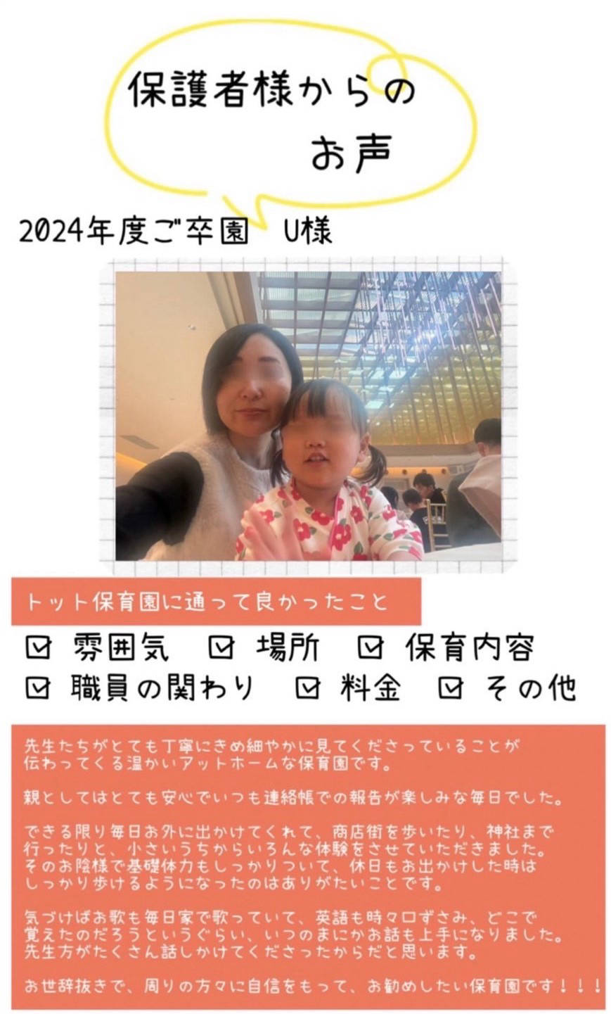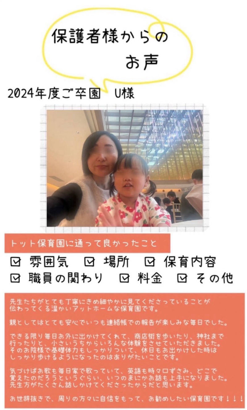 また働くお父さん、お母さんと共にお子さまの成長をしっかりサポートさせていただきます。