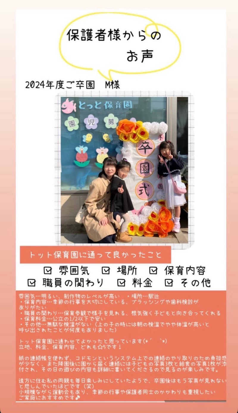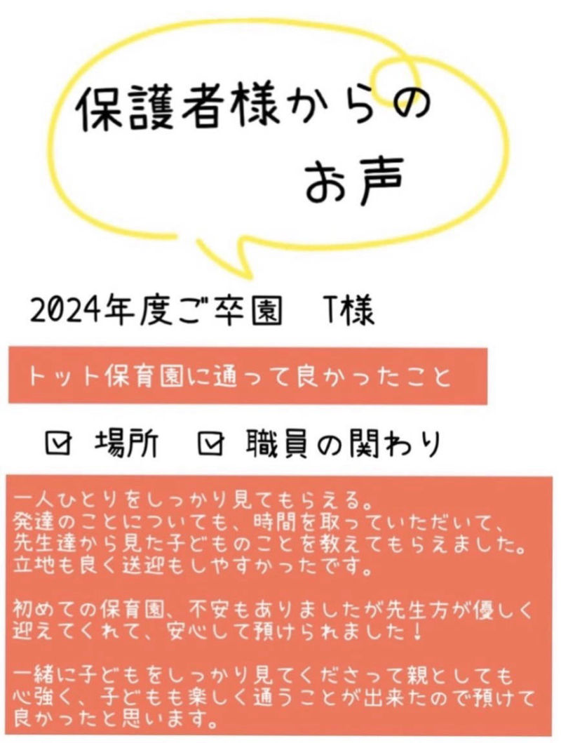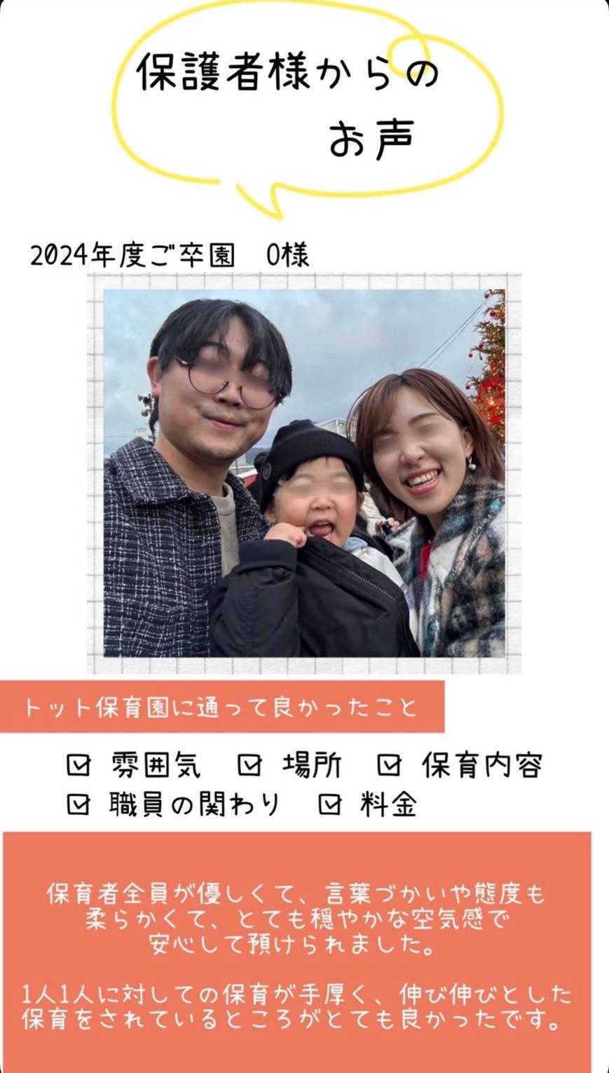 また働くお父さん、お母さんと共にお子さまの成長をしっかりサポートさせていただきます。