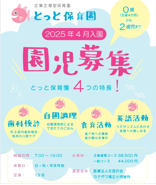 とっと保育園は尼崎・立花にある「企業主導型保育事業」の認定を受けた保育園です。